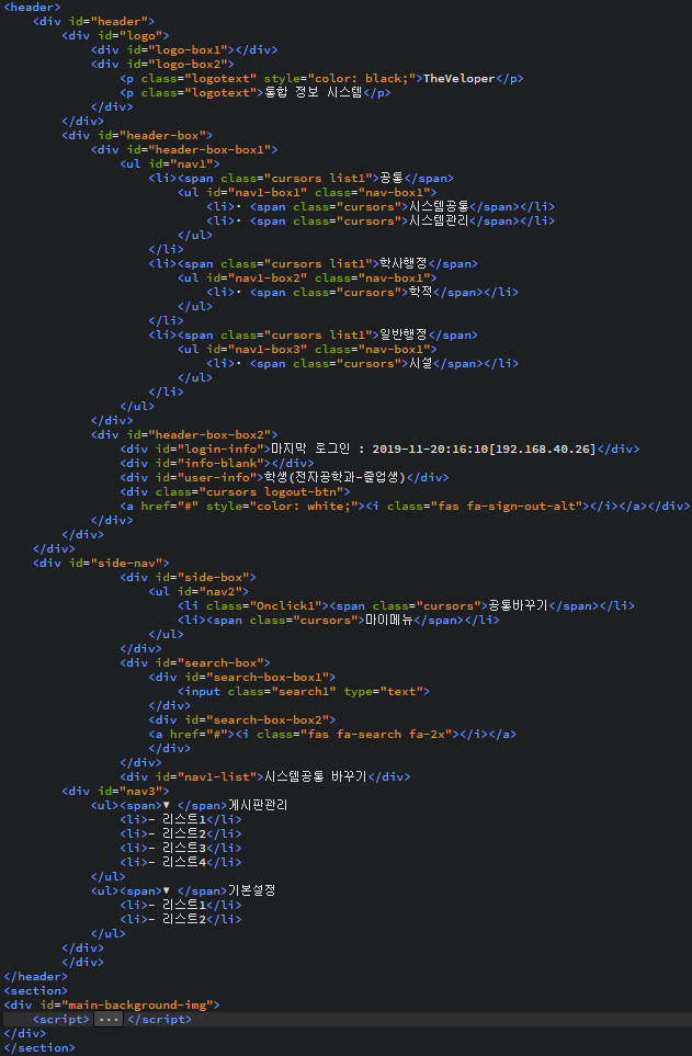 이제 이전 글 처럼 부분별로 이클립스에서 JSP부분과 CSS부분을 나누어 주시면됍니다!