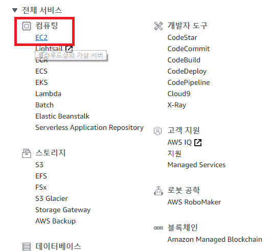 EC2 - 독립된 컴퓨터한대를 통채로 임대해주는 서비스