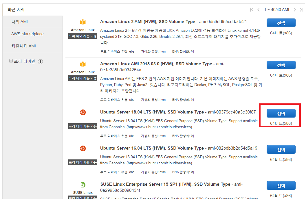 선택하시고 FreeTier는 초기값이 설정되있습니다. 그러니 계속 Next~