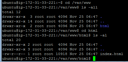 cd html을 하고 ls -al 을 쳐보시면 index.html이있는데 이 html문서의 내용이 default페이지 입니다.