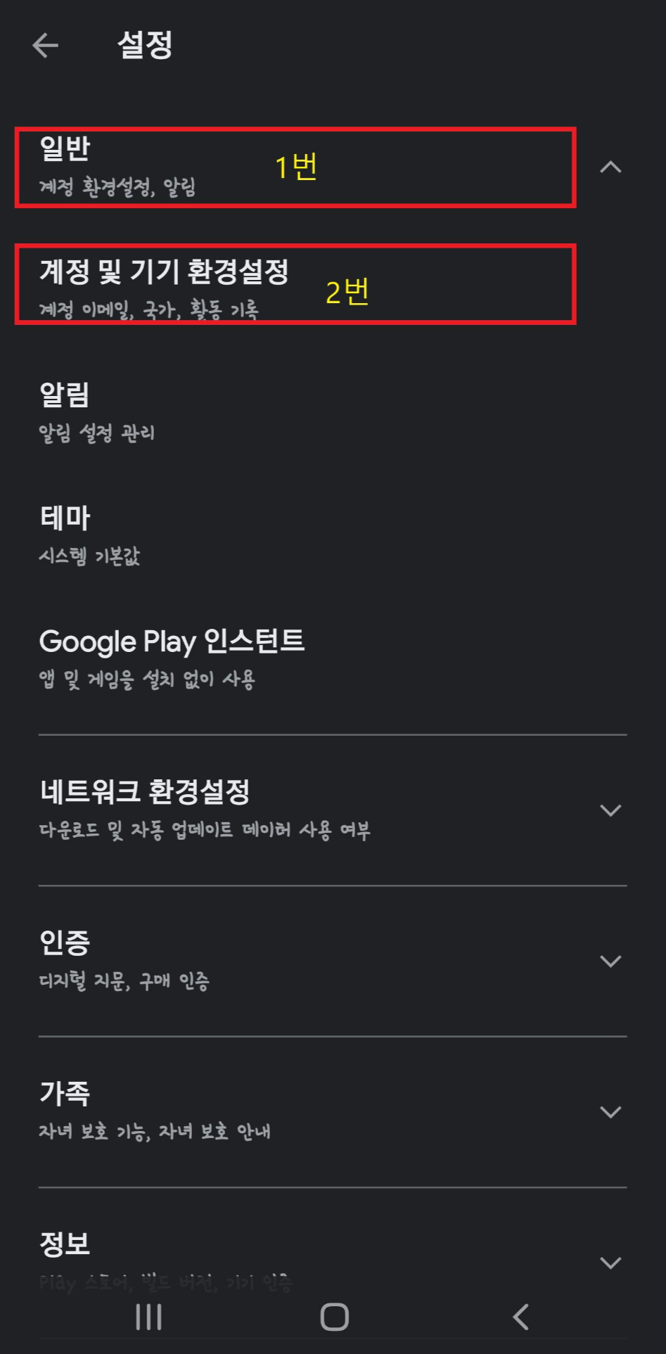 그렇게 설정을 해주시고나면 다시 계정 -> 설정 -> 일반 -> 계정 및 기기 환경설정으로 들어가시면