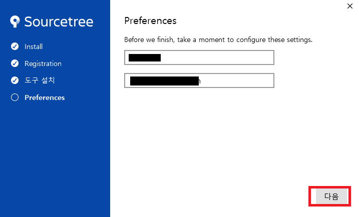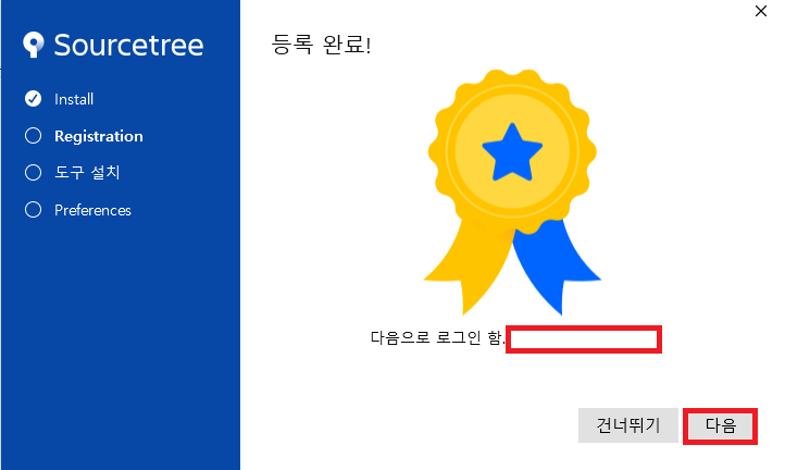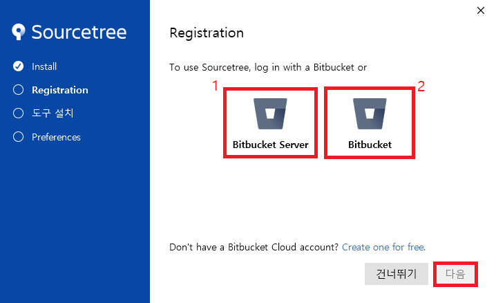 설치 자체를 SourceTree에 가입된 회원만 사용할 수 있도록 만들었다.