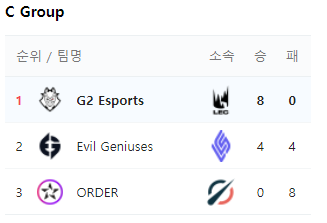 ORDER팀은 8전 전패로 그룹스테이지 탈락을 겪게 되었으나