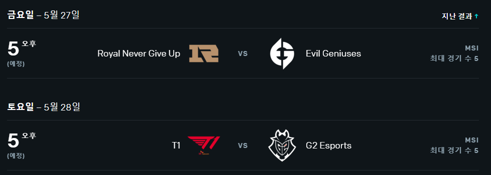 [2022MSI] 럼블 스테이지 Day5 - T1 시작은 지금부터! (0) | 2022.05.25 |