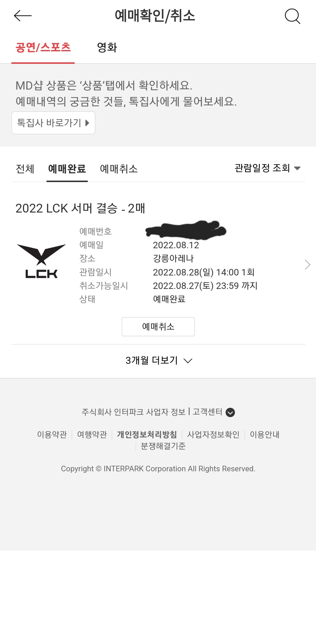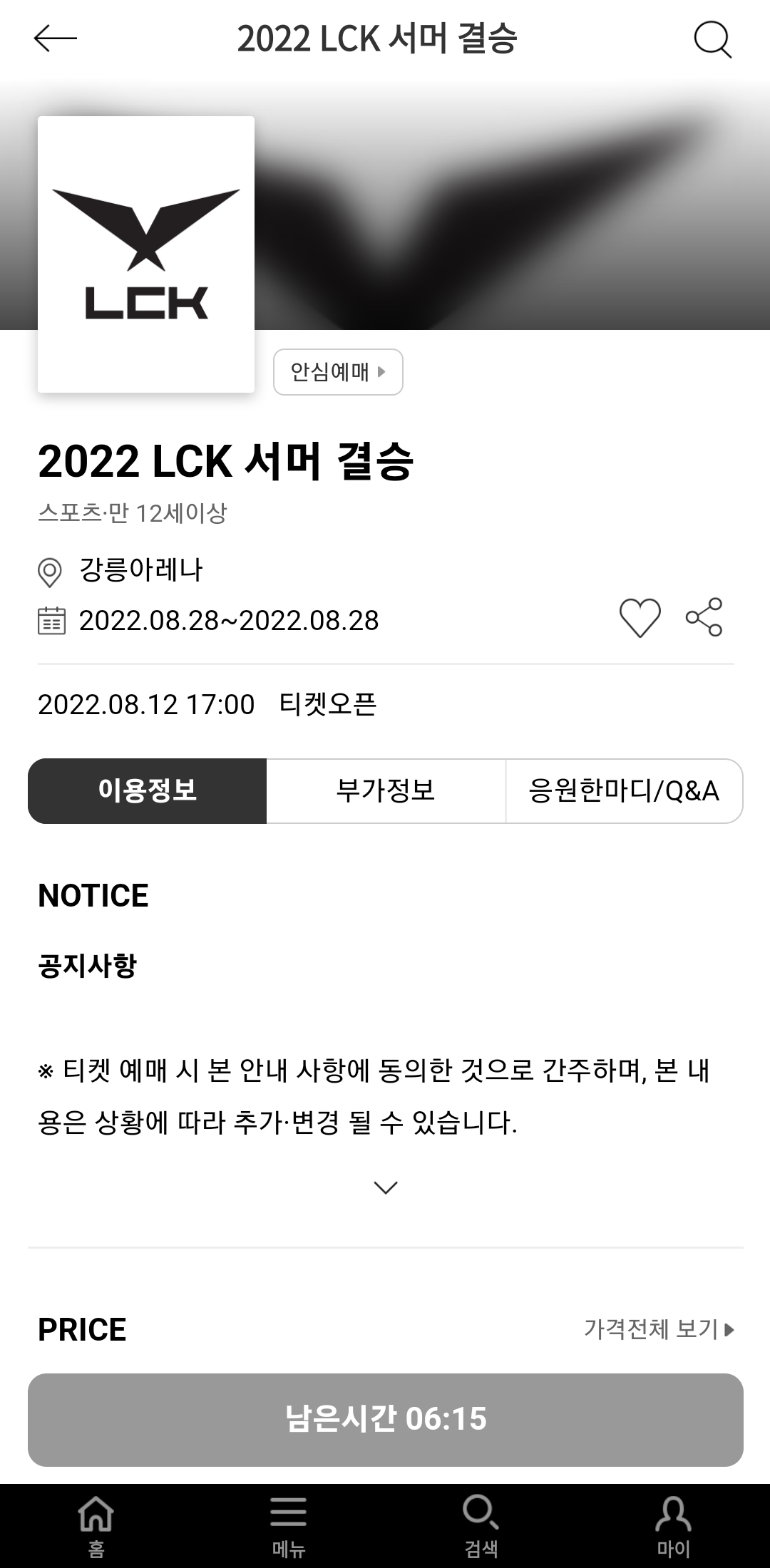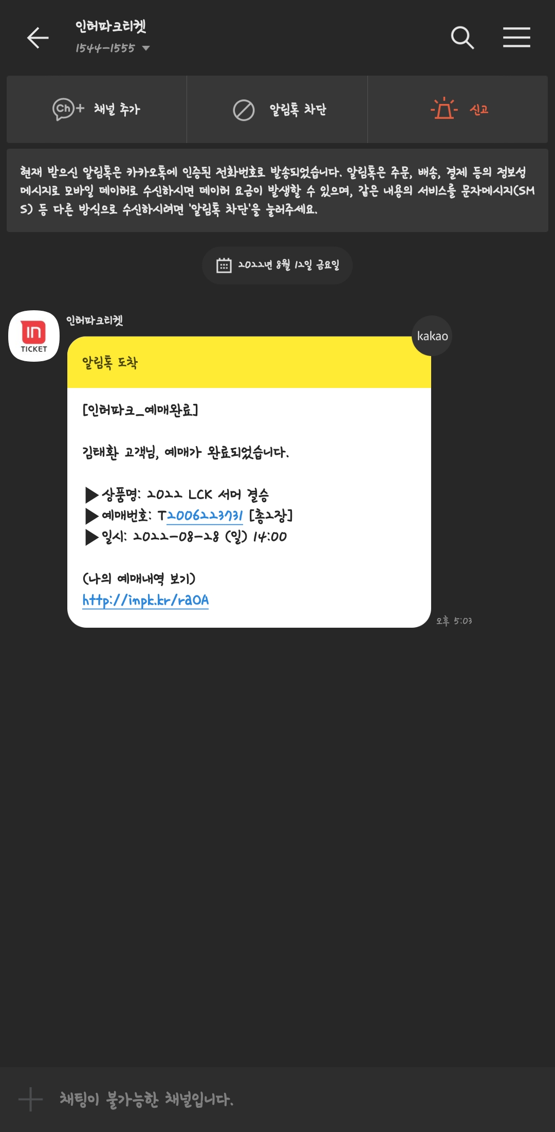 2022-08-12 오늘은 lck summer 결승전 티켓 2차예매날이에요!