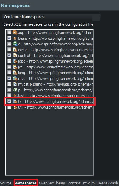 네임스페이스로 들어가서 tx를 체크해주고 저장하자.